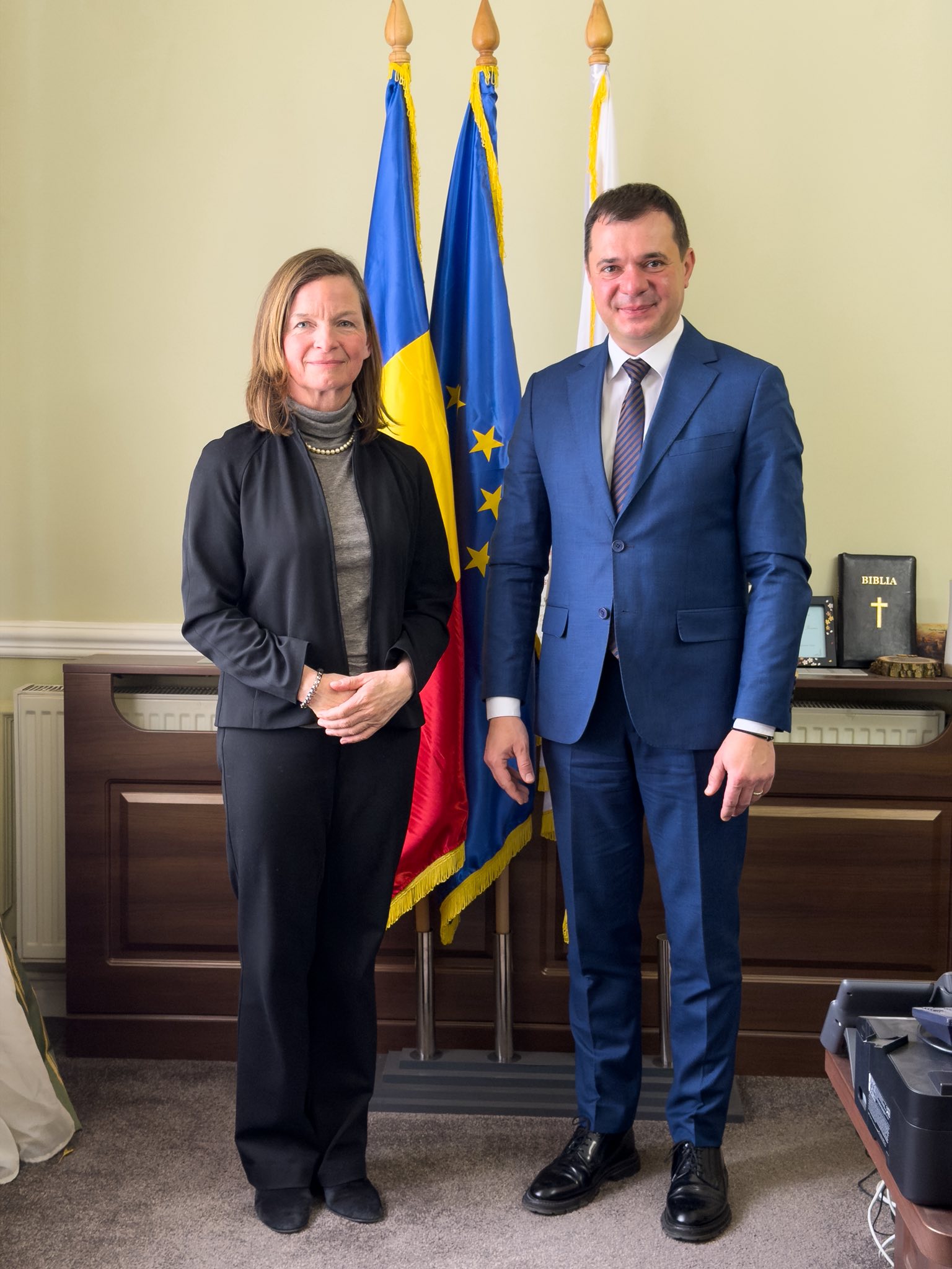 Primarul Municipiului Deva, domnul Lucian Ioan RUS, a primit astăzi, 24 februarie 2026, la sediul instituției, vizita oficială a doamnei consul Wiebke OESER, șefa misiunii diplomatice a Consulatului Republicii Federale Germania la Sibiu. Întâlnirea a avut caracter inaugural, în contextul în care doamna consul și-a început mandatul în luna august 2025. Dialogul s-a desfășurat într-o notă constructivă, fiind reconfirmată deschiderea pentru consolidarea relațiilor bilaterale și pentru dezvoltarea unui cadru de cooperare aplicată între cele două instituții.